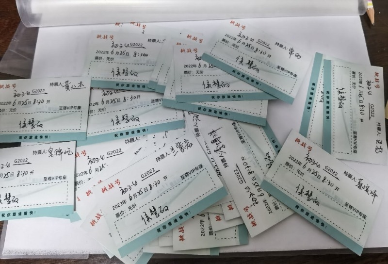 6月20日,呼和浩特市第五中學(xué)初三(4)班班主任侯慧敏老師給班里57名學(xué)生的手寫“告別信”刷屏朋友圈,紙短情長(zhǎng),愛(ài)意滿滿。每封信箋做成車票的樣式,正面寫著車次:“挑戰(zhàn)號(hào)”G2022;時(shí)間:2022年6月25日8時(shí)30分;座位:至尊VIP專座;票價(jià):無(wú)價(jià)?!敖K點(diǎn)站”并未填寫。侯慧敏說(shuō),那是孩子們的夢(mèng)想,需要靠他們自己來(lái)完成。當(dāng)天的畢業(yè)班會(huì)上,當(dāng)每個(gè)學(xué)生打開(kāi)信箋,滿滿的回憶和濃濃的情誼不禁讓孩子們潸然淚下。