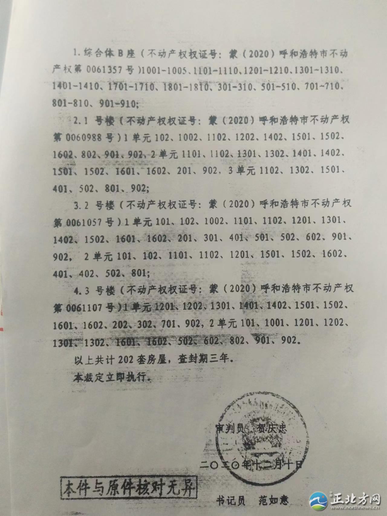 “我們小區(qū)2019年交房,2021年11月份,小區(qū)終于能辦房本了。可是在辦理房本的過程中,我們得知小區(qū)住宅樓100多套房子被多個(gè)法院查封了,小區(qū)辦房本的事也就停了下來。現(xiàn)在,我們找開發(fā)商內(nèi)蒙古世華房地產(chǎn)開發(fā)有限責(zé)任公司(以下簡(jiǎn)稱世華房地產(chǎn)公司)問詢?yōu)槭裁捶课荼徊榉猓螘r(shí)能夠解封,可是開發(fā)商躲著不見我們!這事究竟歸誰管呢?”近日,呼和浩特市玉泉區(qū)上國名都業(yè)主向北方新報(bào)正北方網(wǎng)記者反映。