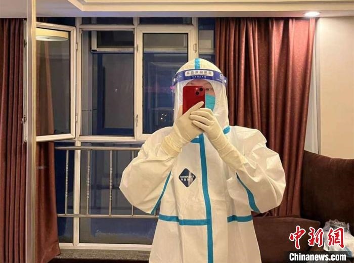 隔離期滿,郭佳煌選擇成為酒店防疫志愿者,工作時間是12點(diǎn)到24點(diǎn)?!爸虚g有4個小時休息,我不覺得辛苦,反而覺得很有意義,希望所有人都能夠團(tuán)結(jié)起來,為抗擊疫情貢獻(xiàn)自己的力量?!惫鸦驼f。
