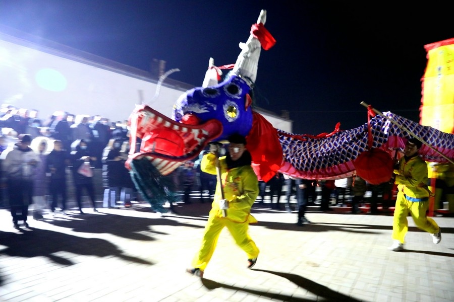 2月6日(農歷正月十六)晚,黃河岸邊的古村落——呼和浩特市托克托縣雙河鎮(zhèn)河口村,一派熱鬧景象,當晚的社火舞龍表演,吸引了周邊眾多居民前來圍觀。