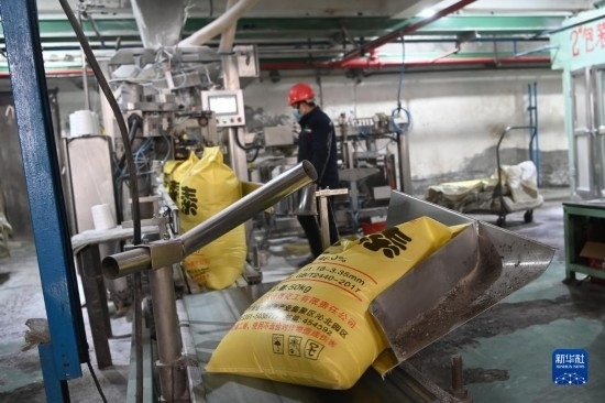 2月16日,北大荒集團(tuán)五大連池農(nóng)場科技服務(wù)中心工人在混拌肥料,為春耕做準(zhǔn)備。
