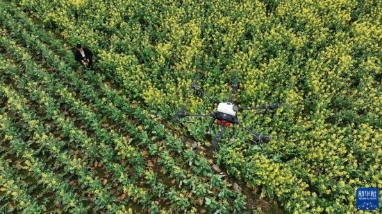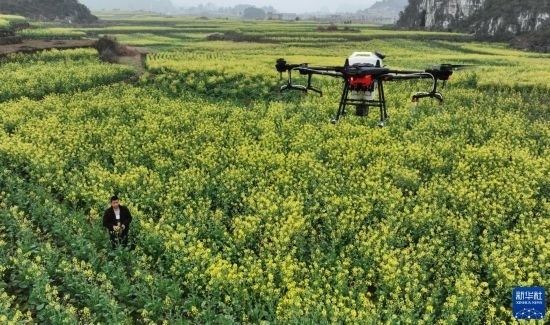 早春時(shí)節(jié),貴州省六盤水市六枝特區(qū)木崗鎮(zhèn)16000余畝油菜花競(jìng)相綻放。當(dāng)?shù)卮迕穹e極整地、育苗,并利用植保無(wú)人機(jī)進(jìn)行春管,一派繁忙景象。