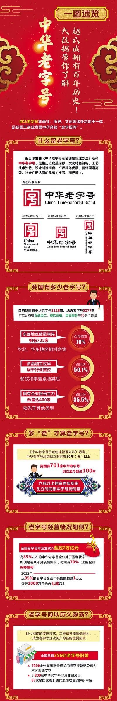 數(shù)據(jù)顯示,目前,全國有中華老字號(hào)1128家、地方老字號(hào)3277家,其中有701家中華老字號(hào)創(chuàng)立至今超過100年,歷史最悠久的北京便宜坊已走過607年的歲月。從行業(yè)看,這些老字號(hào)廣泛分布在食品加工、餐飲住宿、居民服務(wù)等20多個(gè)領(lǐng)域,既有柴米油鹽,也有琴棋書畫。從規(guī)???,全國老字號(hào)年?duì)I業(yè)收入超過2萬億元,在消費(fèi)促進(jìn)、產(chǎn)業(yè)升級(jí)、文化引領(lǐng)等方面發(fā)揮著重要作用。