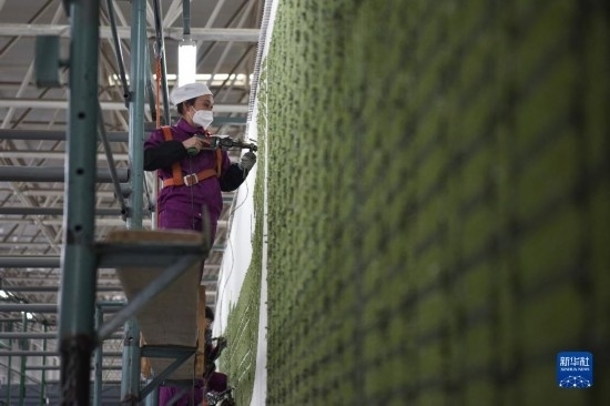 2月21日,在西寧市圣源地毯集團(tuán)有限公司生產(chǎn)車(chē)間,操作工檢查毯面、拔花刺。