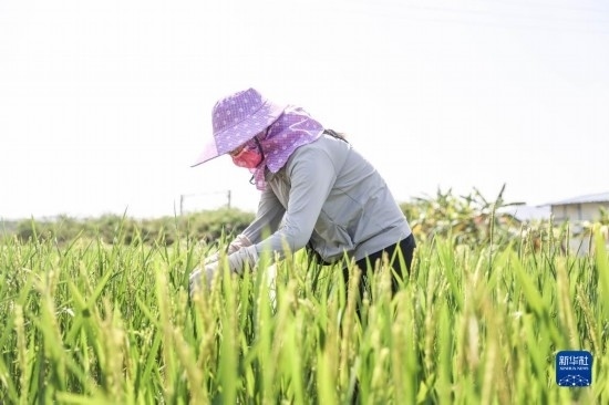 2月22日,青島海水稻研究發(fā)展中心的科研人員在海南三亞的國(guó)家南繁科研育種基地里做水稻雜交實(shí)驗(yàn)。
