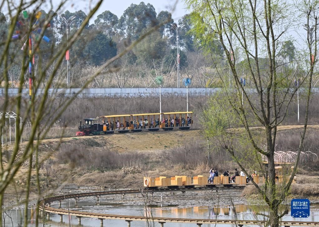 2月25日,游客在四川眉山市仁壽縣中鐵火車來斯休閑體驗(yàn)園乘坐小火車游玩。