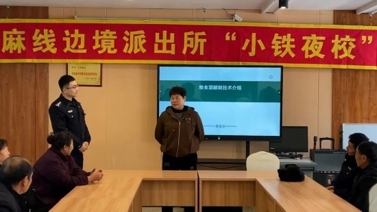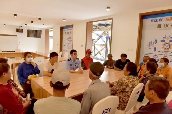 圖為移民管理警察王鐵映組織轄區(qū)群眾開展群防群治工作會議。