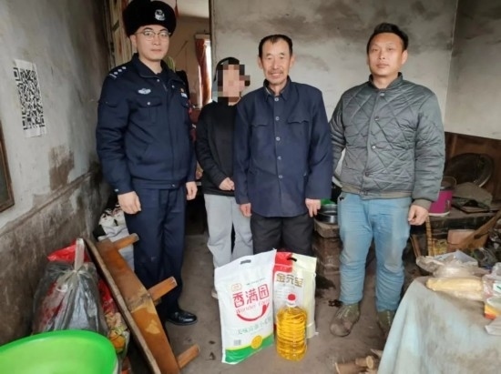 圖為移民管理警察王鐵映為單意超家送慰問品。