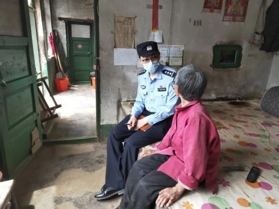 圖為移民管理警察王鐵映走訪慰問轄區(qū)獨居老人李淑蘭。