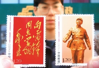 3月5日,中國郵政發(fā)行了一套名為《毛澤東“向雷鋒同志學(xué)習(xí)”題詞發(fā)表六十周年》的紀(jì)念郵票,其中一枚以金色雷鋒塑像為主體圖案。方寸間,雷鋒昂首挺胸,面含微笑,仿佛正闊步走在春風(fēng)中。他的神情歡快溫暖,令人動容,讓人懷念。