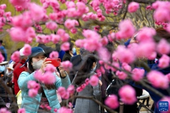 3月16日,第二十三屆中國·青島梅花節(jié)在山東省青島市開幕,漫山遍野的梅花競相綻放,吸引游人前來賞梅游園,享受美好春光。