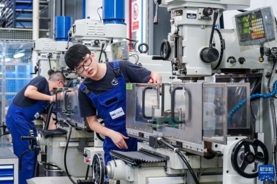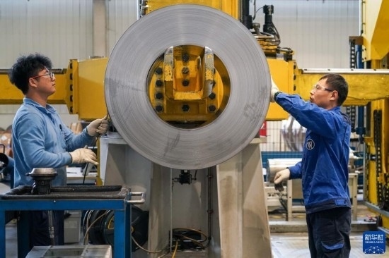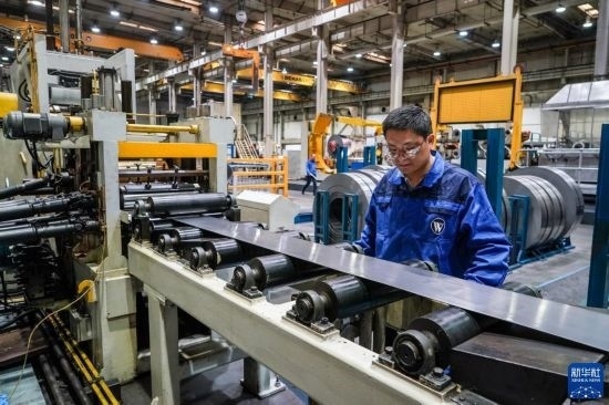 工人在位于太倉(cāng)市高新區(qū)的帝希潔具系統(tǒng)(蘇州)有限公司生產(chǎn)車間內(nèi)進(jìn)行加工作業(yè)(3月16日攝)。