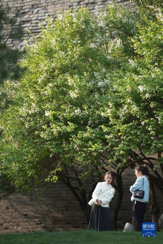 近日,陜西西安明城墻旁春意漸濃,吸引不少市民游客前來踏青。