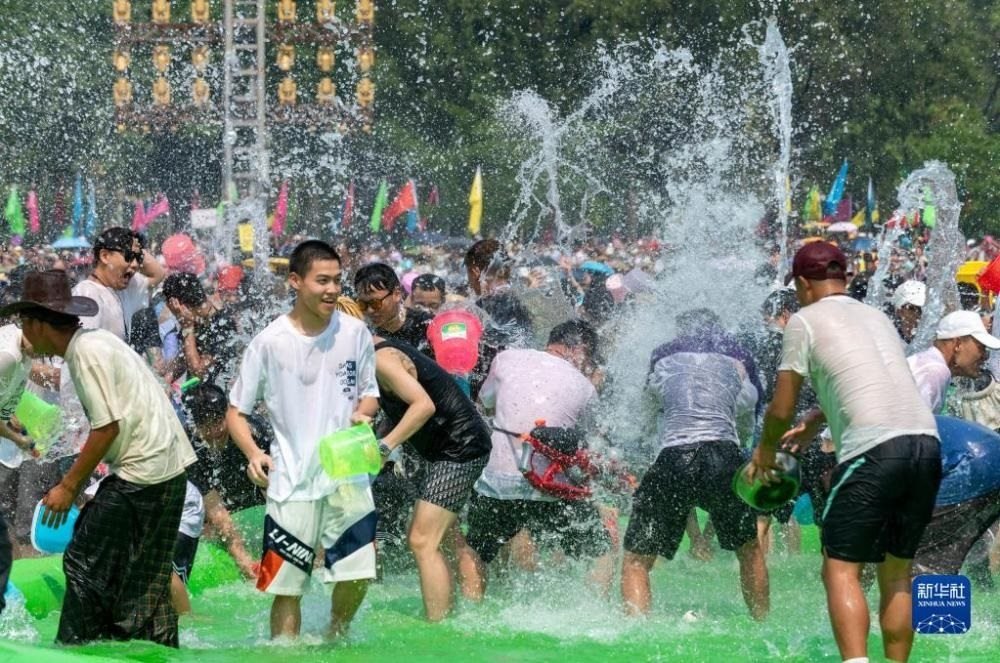云南省德宏傣族景頗族自治州芒市2023年潑水狂歡節(jié)開幕,人們相互潑灑代表幸福、吉祥的清水,表達(dá)著相互間的無(wú)限祝福。