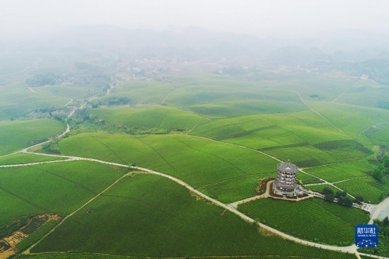 2021年4月12日拍攝的貴州省湄潭縣的“萬畝茶?!憋L(fēng)光(無人機(jī)照片)。