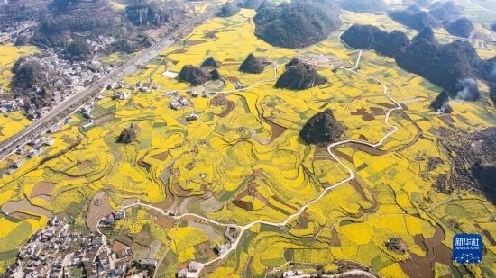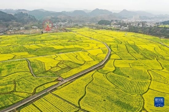 這是3月12日拍攝的貴州省貴定縣盤江鎮(zhèn)“金海雪山”景區(qū)油菜花海(無人機(jī)照片)。