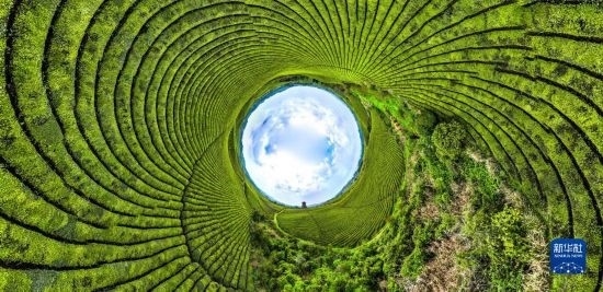 4月4日拍攝的遵義市湄潭縣永興鎮(zhèn)“萬畝茶海”(無人機(jī)全景拼接照片)。