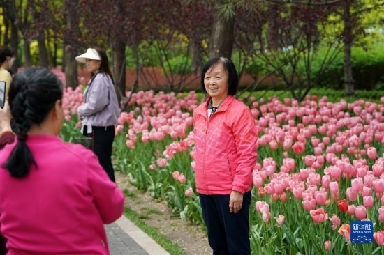 近日,山西省太原市迎澤公園內(nèi)各色郁金香競(jìng)相綻放,吸引游人前來(lái)觀花賞景。