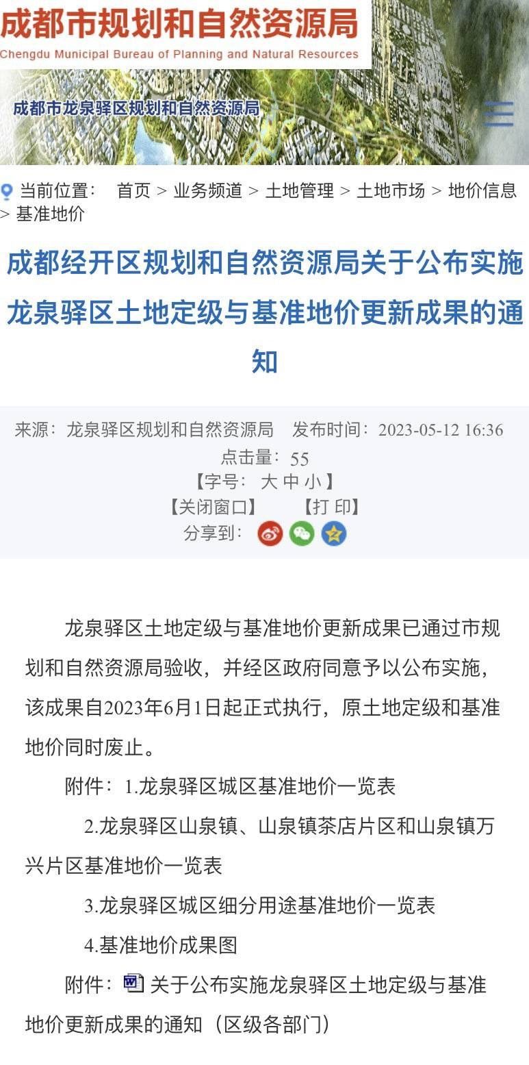 據(jù)悉,成都經(jīng)開區(qū)規(guī)劃和自然資源局門戶網(wǎng)站于2023年5月12日發(fā)布了龍泉驛區(qū)土地定級與基準(zhǔn)地價更新成果,此成果嚴(yán)格按照《四川省國土資源廳辦公室轉(zhuǎn)發(fā)〈國土資源部辦公廳關(guān)于加強公示地價體系建設(shè)和管理有關(guān)問題的通知〉的通知》(川國土資辦發(fā)〔2017〕33號)文件要求,經(jīng)龍泉驛區(qū)人民政府批準(zhǔn)后對外公布,該成果主要內(nèi)容為龍泉驛區(qū)城鎮(zhèn)國有建設(shè)用地使用權(quán)不同用途評估的平均價格,并未標(biāo)注“迪士尼預(yù)留用地”相關(guān)內(nèi)容。