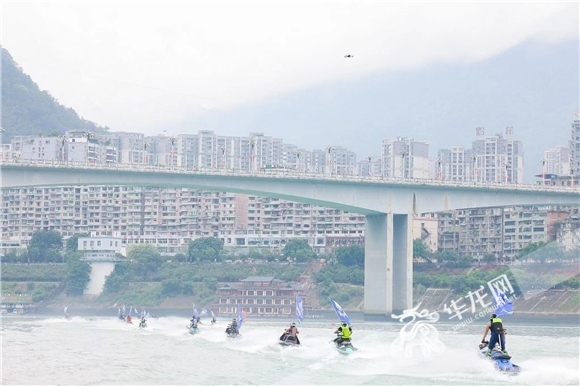 △來(lái)自全國(guó)各地的參賽選手騎著摩托艇入場(chǎng)。華龍網(wǎng)-新重慶客戶端 黃歡 攝
