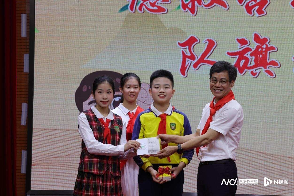 近年來,廣東省中醫(yī)院開展中醫(yī)藥文化進校園活動。5月31日,第一屆“德叔杏林研學中隊”的隊員即將畢業(yè),他們將隊旗鄭重地交回德叔手中,并收下德叔親筆簽名的《醫(yī)學三字經(jīng)》。而這面象征中醫(yī)藥文化的隊旗也傳遞到新一屆“德叔杏林研學中隊”隊員的手中,同時,德叔還贈送了中藥種子,寓意中醫(yī)藥文化生生不息、薪火傳承,在雙方共同打造的這片中醫(yī)藥文化熱土生根發(fā)芽,開花結(jié)果。
