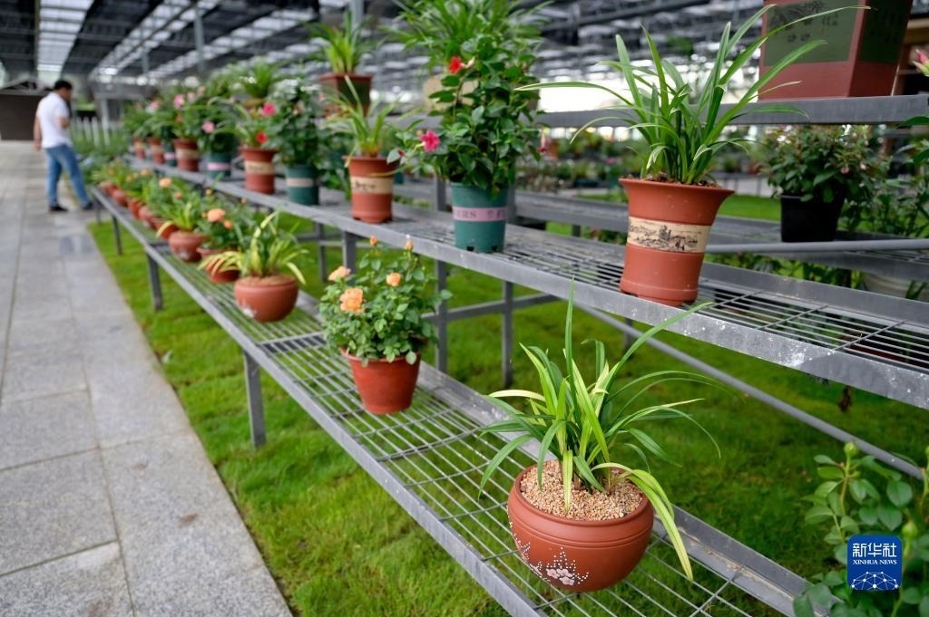 6月8日在浙江省紹興市柯橋區(qū)漓渚鎮(zhèn)棠棣村拍攝的蘭花數(shù)字工廠一景。新華社記者 才揚 攝