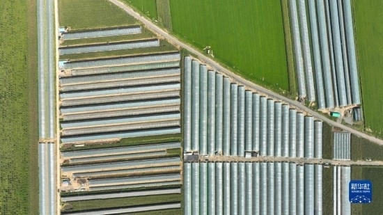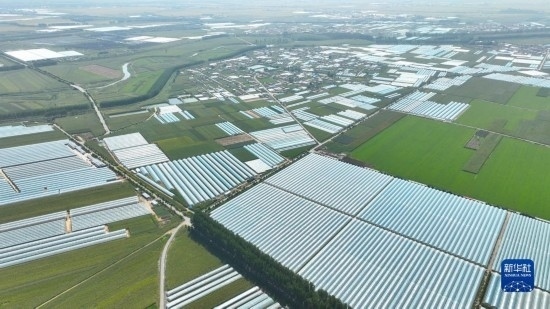 9月7日拍攝的燈塔市柳條寨鎮(zhèn)遼峰葡萄核心產(chǎn)區(qū)的葡萄種植大棚(無(wú)人機(jī)照片)。