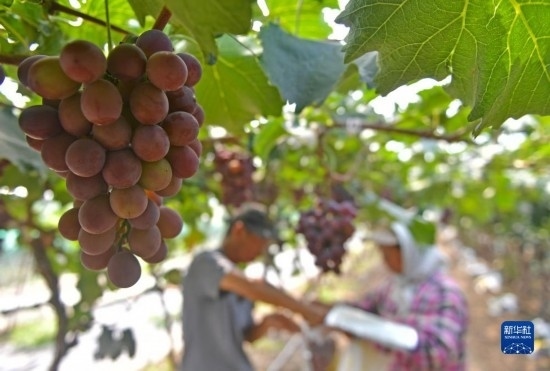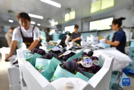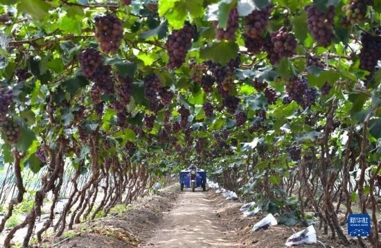 近日,遼寧省燈塔市種植的遼峰葡萄喜迎豐收。燈塔市出產(chǎn)的遼峰葡萄遠(yuǎn)近聞名,目前種植面積約1萬(wàn)畝。當(dāng)?shù)匾研纬善咸雅嘤?、種植、銷售、倉(cāng)儲(chǔ)、加工相關(guān)產(chǎn)業(yè)鏈,葡萄是當(dāng)?shù)剞r(nóng)民致富增收的特色產(chǎn)業(yè)。