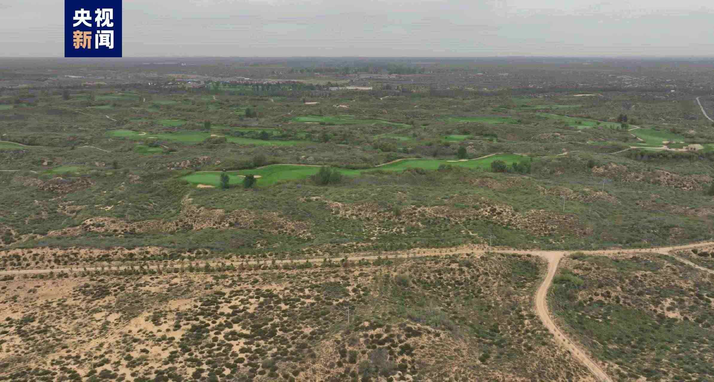 9月11日,中央廣播電視總臺記者在陜西省榆林市實(shí)地采訪調(diào)查發(fā)現(xiàn),在距離榆林市區(qū)西北方向16公里的榆林沙地森林公園內(nèi),一個(gè)名為“綠淘沙 大漠生態(tài)城”的項(xiàng)目里,一座占地近3000畝的高爾夫球場正在營業(yè)。