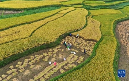 金秋時(shí)節(jié),各地農(nóng)民搶抓晴好天氣忙收獲,田間地頭一派繁忙景象。新華社發(fā)(胡攀學(xué) 攝)