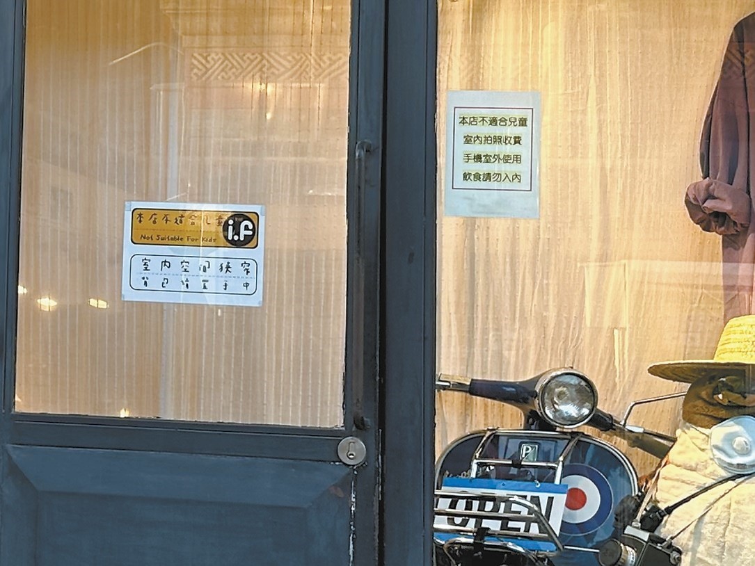 五道營(yíng)胡同的一家服飾店,雖然門上貼著“本店不適合小孩”的提示,但兒童也可以進(jìn)店。