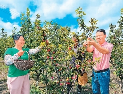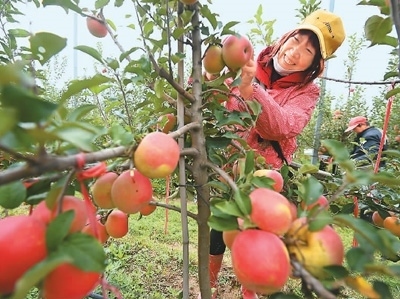 江蘇省宿遷市斯味特萬(wàn)畝蘋(píng)果產(chǎn)業(yè)示范區(qū),園區(qū)職工在采摘蘋(píng)果。 楊群、張思遠(yuǎn)攝影報(bào)道 |