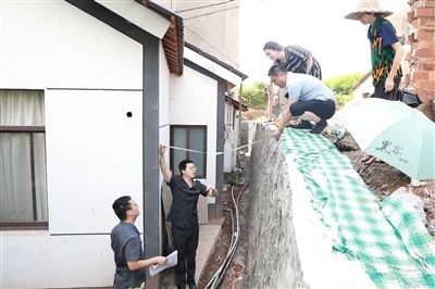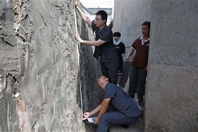 執(zhí)行干警確認石磡墻高度。