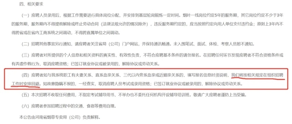 有媒體就此梳理發(fā)現(xiàn),全國(guó)多個(gè)地方的煙草局和煙草公司在招聘中,均提出該要求。其實(shí),翻看近些年各地?zé)煵菥值恼衅感畔⒖梢园l(fā)現(xiàn),列明回避制度是一個(gè)常規(guī)操作。上述規(guī)定出自《國(guó)家煙草專賣(mài)局中國(guó)煙草總公司關(guān)于印發(fā)煙草行業(yè)招聘工作管理辦法的通知》第十一條,早就存在,且非常明確。