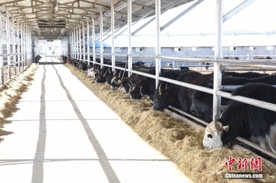 紅原縣牦?,F(xiàn)代農(nóng)業(yè)園區(qū)建成麥洼牦牛產(chǎn)業(yè)基地6個(gè),集中連片牧草生產(chǎn)基地5.8萬(wàn)畝。圖為紅原縣麥洼牦?,F(xiàn)代農(nóng)業(yè)園區(qū)。