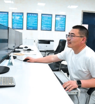 孫旭宏在密切監(jiān)測水量信息。本報記者 張 棖攝
