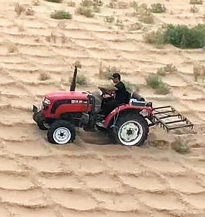 杜維倫在運送稻草,準備制作草方格。 受訪者供圖