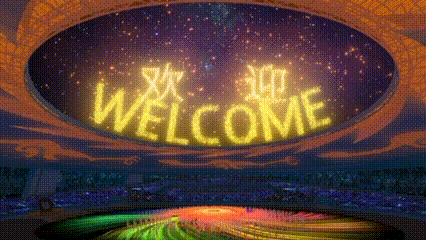 當宣布本屆世界大學(xué)生運動會開幕時,空中金色焰火熱烈綻放,隨后空中出現(xiàn)“歡迎”“WELCOME”字樣,隨著大運會火炬塔被點燃,焰火在空中打出成都第31屆世界大學(xué)生夏季運動會U形會徽,體育場上空焰火呈現(xiàn)英文“Make Dreams Come True”,命運與共,成就夢想。