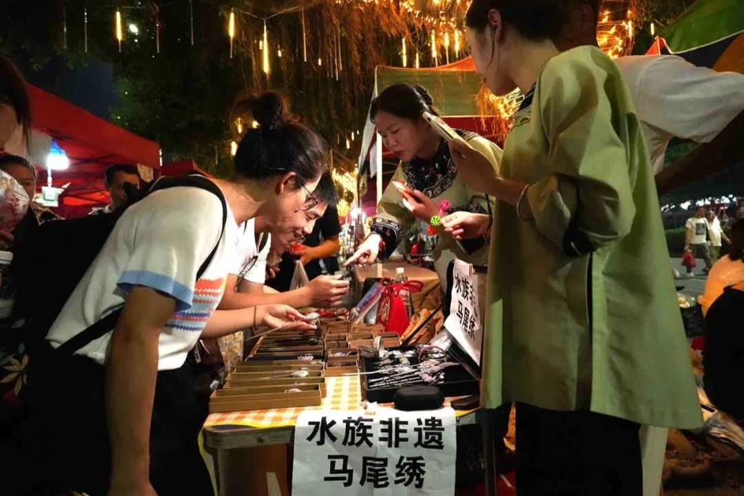 一位賣榕江卷粉、芋頭糕等特色小吃的小吃攤攤主說:“我們從早忙到晚,擺攤到凌晨1點(diǎn)鐘左右,人太多了,一天能賣幾百碗。”