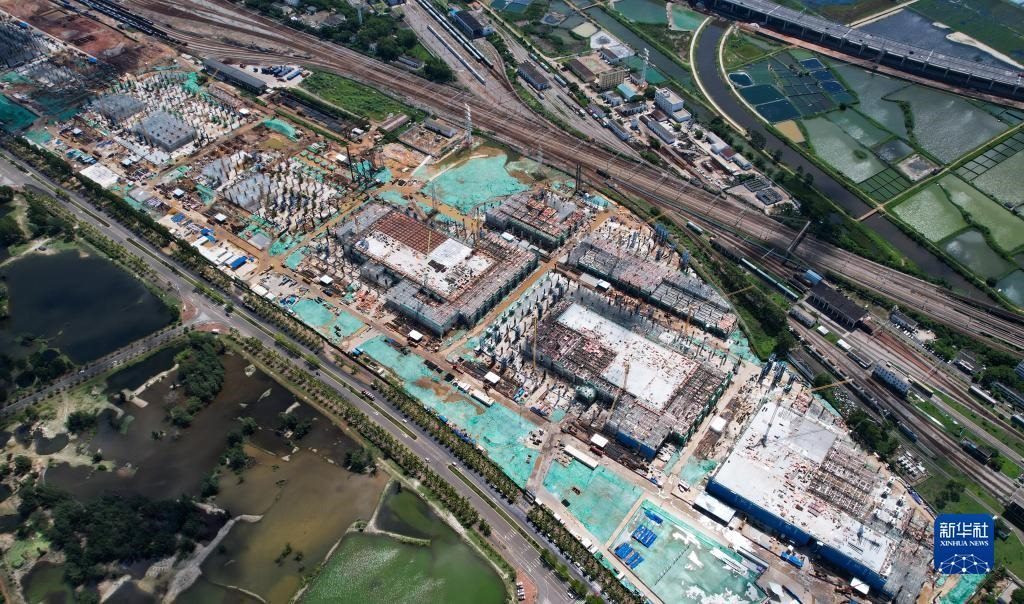 ??谛潞8酆湍细邸岸€口岸”(貨運(yùn))集中查驗(yàn)場(chǎng)所建設(shè)項(xiàng)目(7月21日攝,無人機(jī)照片)。