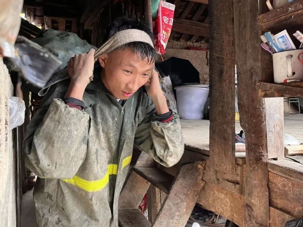 來(lái)不及脫掉被泥垢包裹的雨衣