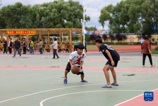 8月11日,居民在吉林省舒蘭市舒蘭三中居民安置點打籃球。