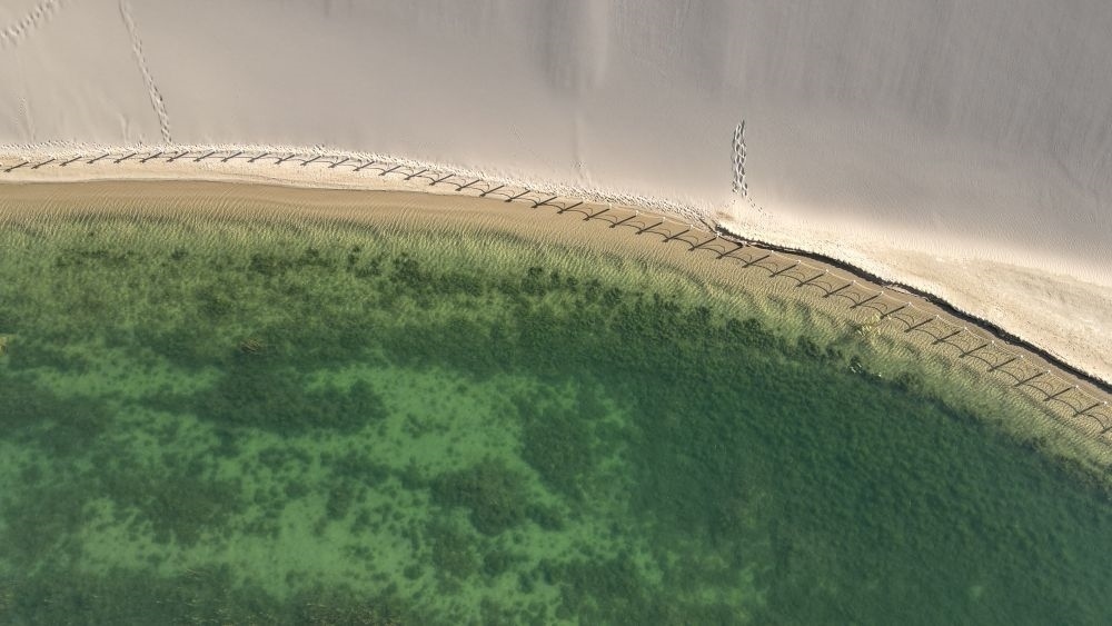 20多年來(lái),月牙泉及其周邊實(shí)行嚴(yán)格的水資源管理。為維系沙泉共生的微妙平衡,泉水南北兩側(cè)的沙山被封禁,人們漫步在月牙泉周邊時(shí),需要套上鞋套。