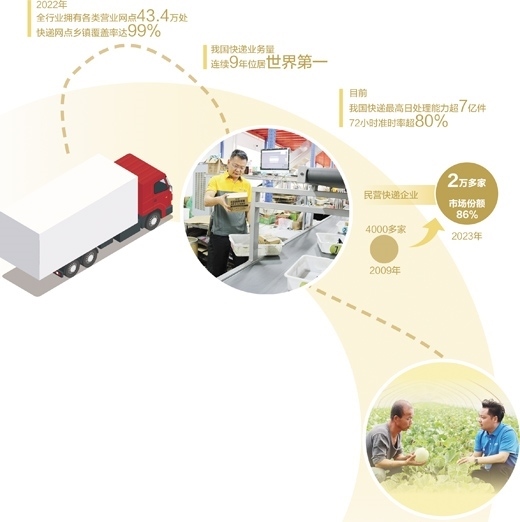 加入快遞網點后,賀英售賣的水果當天就能發(fā)貨,3天以內就能送達?!鞍芽爝f網建起來,才能讓電商更好地融入鄉(xiāng)村?!毙旆逭f。