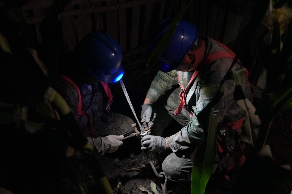 國(guó)網(wǎng)牡丹江供電公司電力搶修人員連夜進(jìn)行搶修。(受訪者供圖)