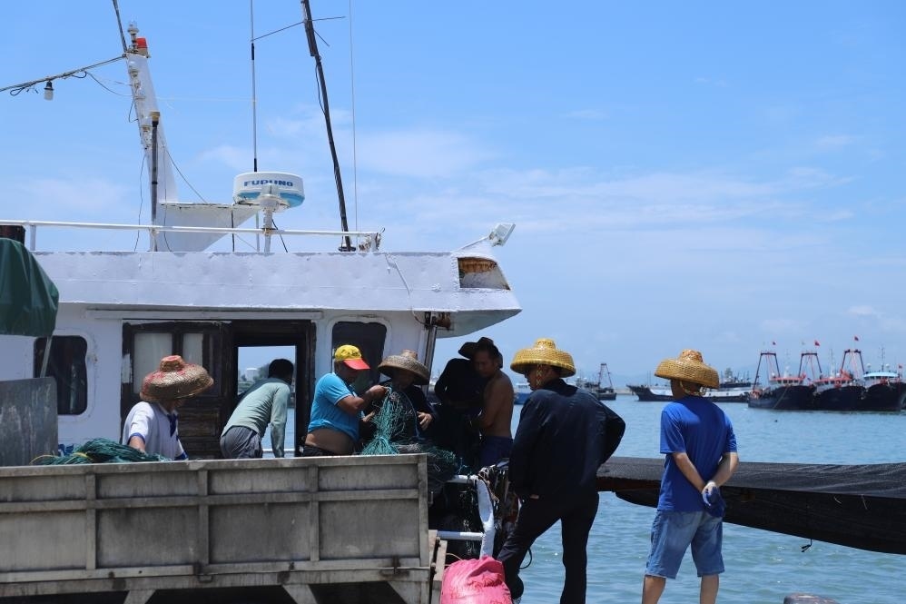 8月16日上午,溫潤的海風輕拂海面,一排排漁船??吭陂l坡港海灣,汽笛聲陣陣起伏。休息了三個半月的漁民鄭建華坐在船頭,正翹首以盼正午時分開漁號角的吹響。