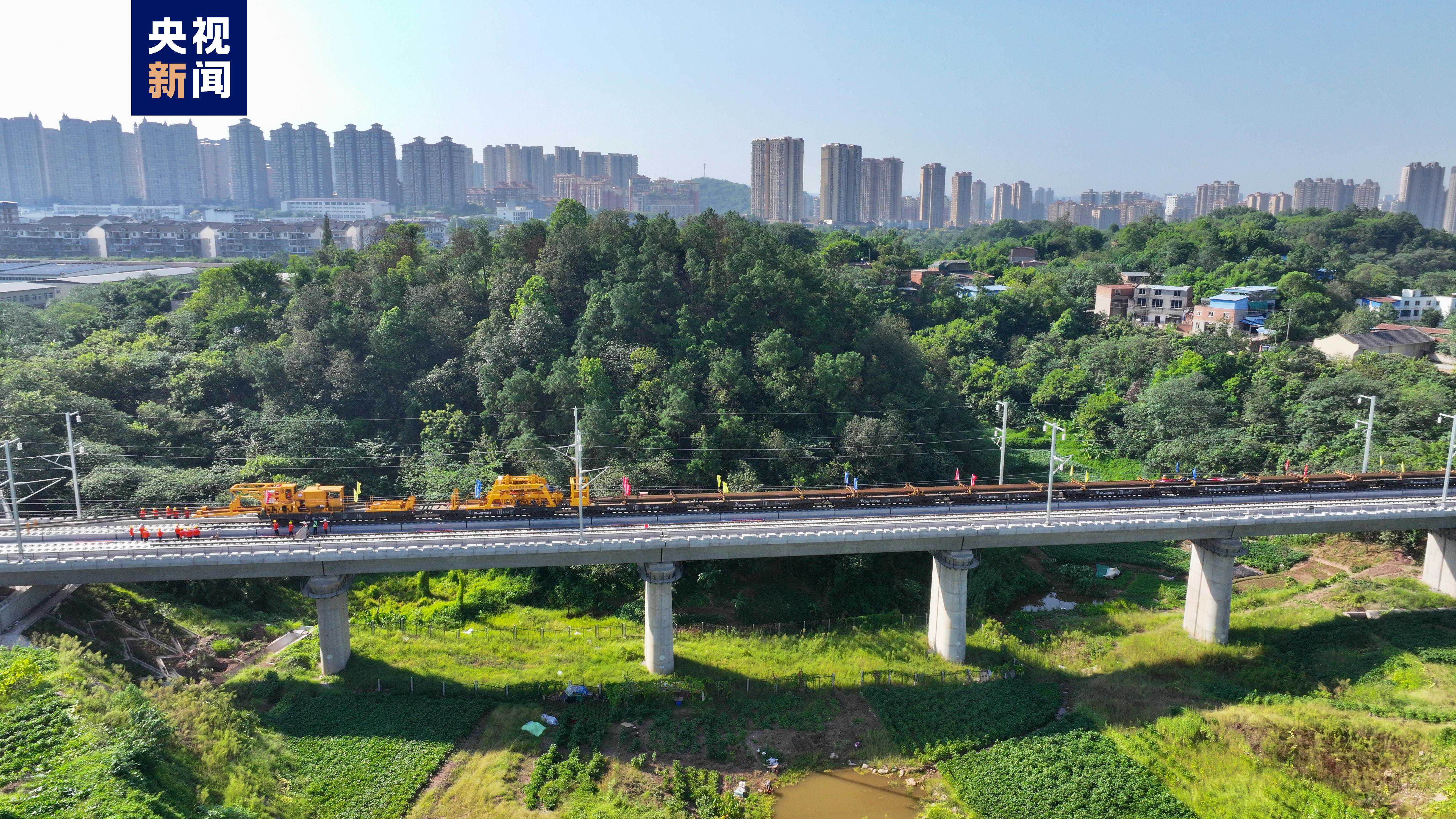 記者從京昆高鐵西昆公司獲悉,9月6日上午9時(shí),在四川省瀘州市馮灣特大橋施工現(xiàn)場,隨著第一組500米長鋼軌穩(wěn)穩(wěn)落下,標(biāo)志著重慶至昆明高速鐵路重慶至宜賓段(以下簡稱渝昆高鐵川渝段)全面進(jìn)入鋪軌階段。