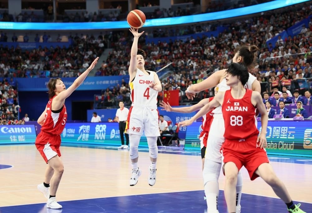 決賽開場,兩隊(duì)球員都略顯緊張,中國隊(duì)幾次中投失手,日本隊(duì)數(shù)次快攻也未能建功。依靠韓旭在內(nèi)線的牽制,黃思靜連續(xù)命中2記遠(yuǎn)投,李夢(mèng)突破打成“2+1”,中國隊(duì)打出17:7的開局。面對(duì)身材更高大的中國姑娘,日本球員通過不斷突破傳球創(chuàng)造得分機(jī)會(huì)。首節(jié),中國隊(duì)26:16領(lǐng)先對(duì)手。