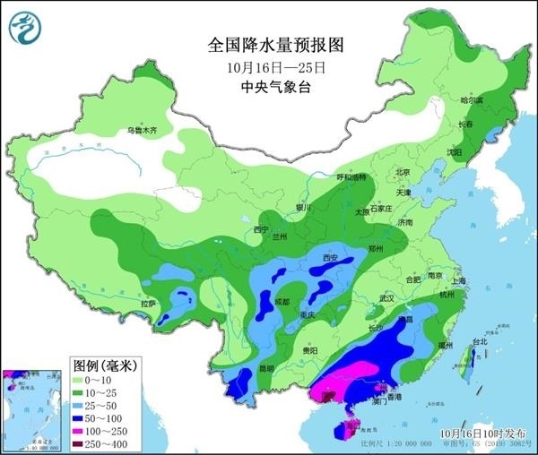 19日以后,隨著冷空氣南下,降水區(qū)域也將擴(kuò)展到江南、華南等地。值得注意的是,華南地區(qū)由于水汽更充沛,再加上熱帶擾動(dòng)影響,將成為強(qiáng)降雨中心。特別是廣西,暴雨或大暴雨將持續(xù)3至4天,這在常年10月中旬相當(dāng)少見,當(dāng)?shù)匦枳⒁夥婪冻掷m(xù)強(qiáng)降雨可能引發(fā)的次生災(zāi)害。