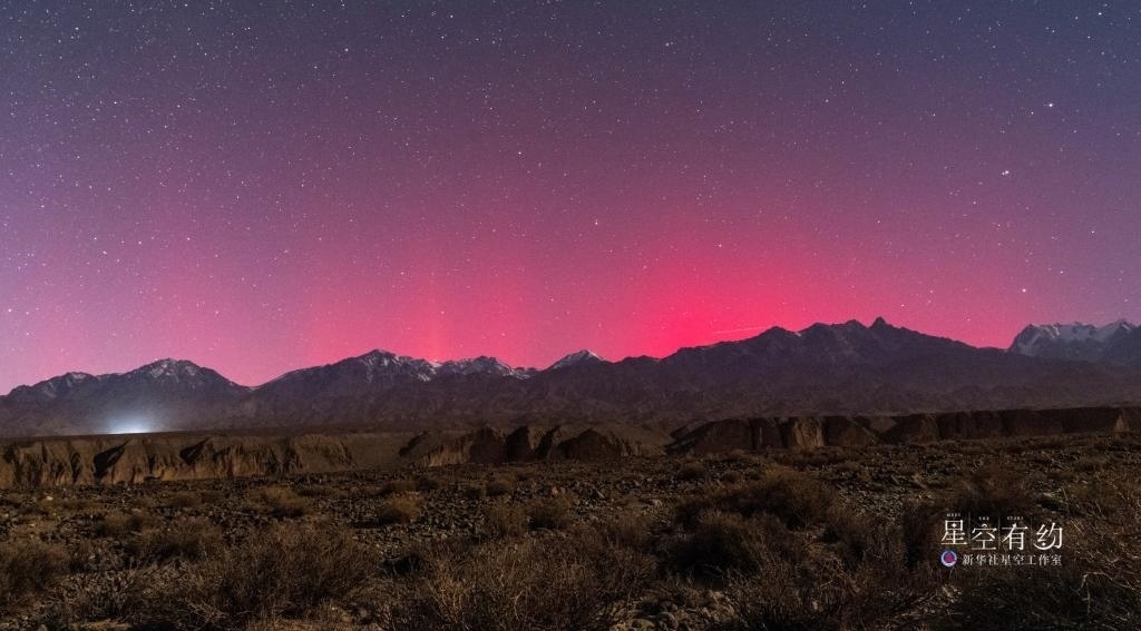 新疆星空攝影愛(ài)好者楊靂鵬2023年11月6日凌晨在新疆烏魯木齊達(dá)坂城拍攝的極光現(xiàn)象。(本人供圖)
